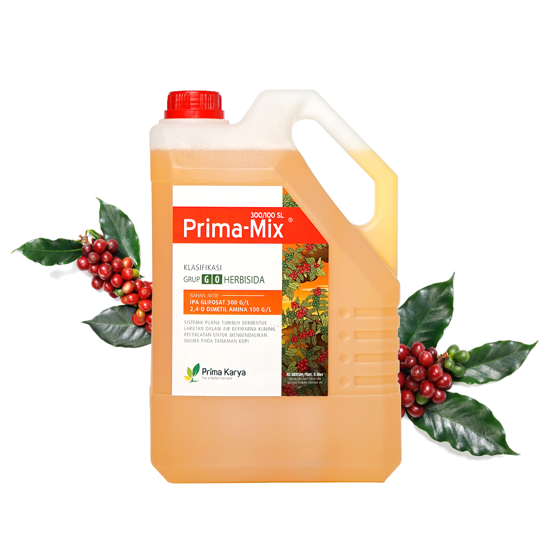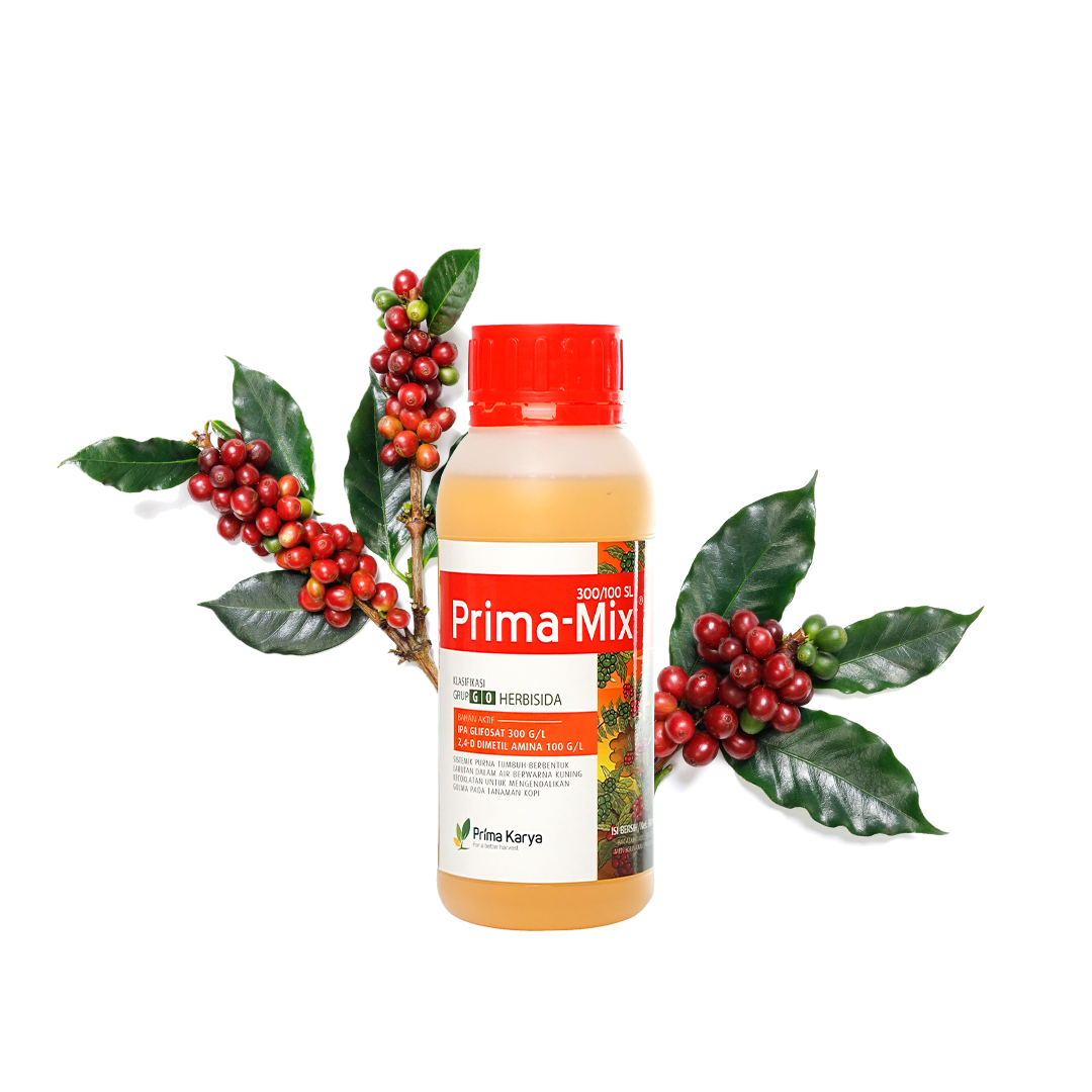 Full-grown systemic herbicide with 2 active ingredients, namely Ipa Glyphosate 300 g/L and 2,4-D Dimethylamine 100 g/L in the form of a brownish yellow water solution to control weeds in coffee plants.